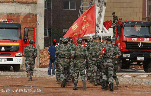 上午八點半,隨著三聲信號槍發(fā)出的指令,演練正式開始,整個演練共分三個科目進行。首先演練的科目是消防搶險救援,場景設定在一幢綜合樓內發(fā)生火災,樓內大火燃燒,濃煙滾滾,夾雜著刺鼻的異味,造成整幢樓多名人員被困,接到報警電話后,縣消防官兵第一時間趕赴火災現(xiàn)場,有序組織被困人員進行疏散,在消防、公安、燃氣、供電、衛(wèi)生等部門的協(xié)同下,火勢迅速得到有效控制和滅;其次演練的科目為城市內澇搶險救援,模擬發(fā)生城市內澇,街面積水達50厘米,受災群眾和物質需要轉移,民兵應急分隊通過開展積極救援,被困群眾被轉移到安全地點并得到妥善安排;最后科目是各參加應急演練分隊進行匯報演出,他們進行了隊列、擒敵拳、擒拿格斗、警棍盾牌術等表演。