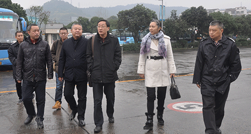 省運(yùn)管局車輛技術(shù)維修管理處處長(zhǎng)羅忠(中)在南運(yùn)集團(tuán)副總經(jīng)理鄭永強(qiáng)陪同下,檢查南充汽車客運(yùn)站冬季及歲末年初安全生產(chǎn)工作落實(shí)情況。