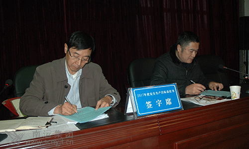 王董事長到會作重要講話  王董事長與高坪分公司經(jīng)理蒲正宏簽訂《2017年度安全生產(chǎn)目標(biāo)管理責(zé)任書》
