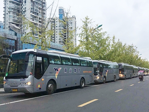 南運集團歐洲之星豪華大巴駕駛員在遂寧市恭候中外嘉賓乘車