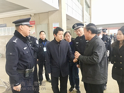 閬中市副市長、公安局長祝隆平(左三)檢查閬中客運中心春運安全工作