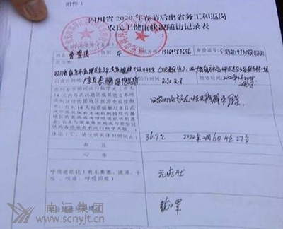 每位乘客的《四川省2020年春節(jié)后出省務工和返崗農民工健康狀況隨訪記錄表》