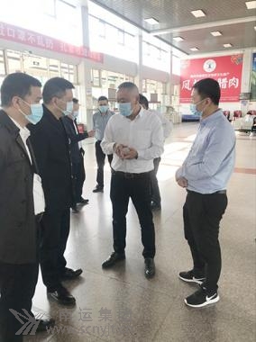 副市長陳有波(右二)在南充汽車客運站檢查“五一”節(jié)安全及疫情防控工作。