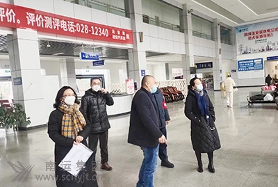市交通運輸局黨委委員、副局長蔣勇(左二)在營山汽車客運站檢查春運工作。