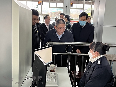 省交通運輸廳安全總監(jiān)王波(左二)在南充汽車客運站行包安檢處檢查