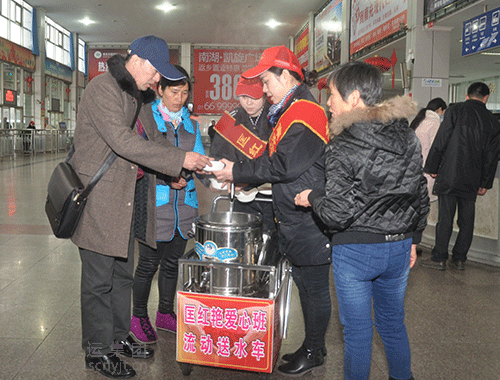 1月28日,是農(nóng)歷雞年的大年初一。在這合家團(tuán)聚的日子里,一些人為了事業(yè),為了國(guó)家建設(shè)或其他各種原因,還奔波在旅途。南充汽車客運(yùn)站內(nèi),就匯聚了不少來(lái)自四面八方的客人。為讓他們感受到家的溫暖,車站黨支部積極組織“匡紅艷愛(ài)心班”“小紅帽”站務(wù)人員,開(kāi)展“情滿旅途”活動(dòng),從上午8:30開(kāi)始,把煮好的湯圓一碗碗送到旅客手中,這是一片溫情,更是一份親情,在送湯圓的過(guò)程中,很多旅客情不自禁地掏出手機(jī)拍照留影。一位等候重慶班車的張姓旅客十分感慨地說(shuō):“你們做得好,謝謝你們,還想得這么周到”。還有一對(duì)來(lái)自蓬安縣的母女,一邊吃著湯圓一邊說(shuō):“我們今天早晨沒(méi)有吃到早飯,沒(méi)想到在你們這里還能吃到贈(zèng)送的湯圓,謝謝你們”。