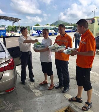 “大家辛苦了!我和班子各位領導一起,受集團公司黨政工領導委托來看望慰問大家,感謝大家的辛勤工作和無私奉獻,希望大家在高溫天氣下保證安全生產(chǎn)的同時,一定要注意防暑降溫。”7月17日,南運集團閬中分公司黨總支書記、經(jīng)理李德維,率領導班子成員,受集團公司黨政工領導委托,深入安全生產(chǎn)第一線,看望慰問在高溫天氣下堅守工作崗位的一線員工,并送上了防暑降溫物品。 今年夏季入伏以來,氣溫異常升高。為了保障安全生產(chǎn),保護員工身體健康防止中暑,慰問當天,該公司領導先后來到閬中汽車站、閬中鴻運出租公司、閬中鴻遠公司、閬中鴻運旅行社和閬中客運中心,看望慰問高溫天氣下堅守在安全例檢、車輛出站檢查、“三品”檢查、檢(售)票、場壩管理、站外稽查、公車駕乘和修理技工等生產(chǎn)一線崗位員工。每到一處,領導們都與員工親切握手交談,詢問了解有關情況,囑咐大家在高溫天氣下一定要注意健康防止中暑,努力搞好安全生產(chǎn),確保不發(fā)生安全意外事故,并向大家的辛勤工作表示感謝,同時送上了霍香正氣液、清火涼茶、袋裝冰糖、碧螺香綠茶等防暑降溫物品。員工們感謝領導的關心,表示一定積極工作,做好安全生產(chǎn)各項工作,杜絕發(fā)生安全意外事故,為持續(xù)搞好企業(yè)的安全生產(chǎn)和轉型發(fā)展作出應有的貢獻。 (茍興權)