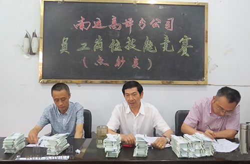 近日,高坪分開展了員工崗位技能競賽,共組織19名員工進(jìn)行點鈔速度比賽。比賽由預(yù)賽和決賽兩部分組成,19參賽人員抽號分三組比賽。由預(yù)賽決出前一、二名進(jìn)入決賽,決賽再決出一等獎1名、二等獎2名、三等獎3名。選手手工點鈔方式為完成3把共計800張點鈔劵,手工扎把、確認(rèn)各扎把的張數(shù)、簽名,在數(shù)量準(zhǔn)確的前提下,速度最快、數(shù)鈔最準(zhǔn)的為優(yōu)勝者。