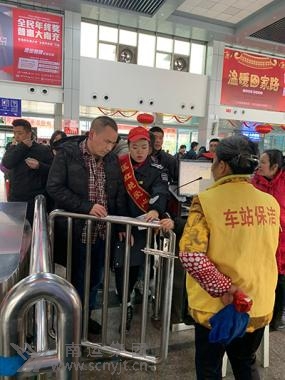 2020年1月17日,恰逢農(nóng)歷臘月二十三小年,南充汽車客運(yùn)站在12:00時(shí)許出行高峰時(shí)段,站內(nèi)人頭攢動(dòng),班車班次十分密集。 這時(shí),“匡紅艷”愛(ài)心班工作人員陳君正在車站售票大廳值班,見(jiàn)進(jìn)來(lái)一位旅客呆立在大廳門口半天不動(dòng),似乎有什么難處?陳君立馬走了過(guò)去,看到這名旅客兩眼空洞,發(fā)現(xiàn)原來(lái)是一位盲人,于是陳君便問(wèn)他有什么需要幫忙的嗎? 經(jīng)詢問(wèn)后得知,該名旅客叫何發(fā)洱,貴州畢節(jié)人。這次出門是去合川走親戚,因?yàn)榧胰藳](méi)有時(shí)間,這次他是一人單獨(dú)乘車。別人把他指引進(jìn)了車站,他卻不知道售票窗口具體在哪里? 見(jiàn)此情景,陳君對(duì)他說(shuō):“何大哥,我是車站工作人員,你不要著急,我?guī)阆热ナ燮贝翱谫I票,然后再帶你去坐車好嗎?”聽(tīng)到這里,盲人大哥激動(dòng)的連連點(diǎn)頭。于是,陳君攙扶著他來(lái)到窗口買到了14:30分的合川車票,貼心的幫他把錢、票、身份證收拾好,陳君看離檢票時(shí)間尚早,又擔(dān)心他在流動(dòng)的人潮中不方便,便引導(dǎo)盲人大哥到重點(diǎn)旅客候車室休息,安頓好該旅客后,陳君還為他送來(lái)了熱水和熱氣騰騰的飯菜,并囑咐到:“何大哥,你先在這休息,等到檢票時(shí)間了我再來(lái)帶你乘車! 14:10分時(shí),合川班車準(zhǔn)時(shí)駛上站臺(tái),陳君來(lái)到何大哥身邊將他帶至班車前,與該班駕駛員作了面對(duì)面的交接,并將他帶至自己的座位上。何大哥緊握陳君的手一再表示感謝。這雖然是溫馨春運(yùn)出行的一件小事,但是這份愛(ài)卻溫暖了春運(yùn)“回家”路。 (胡燕)