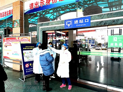 車站下客區(qū)醫(yī)護人員為乘客檢測體溫