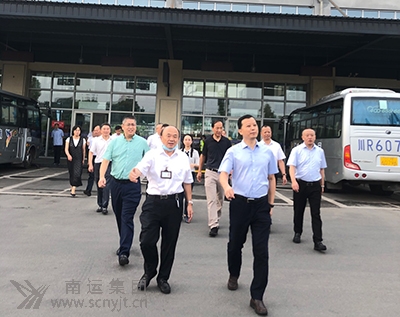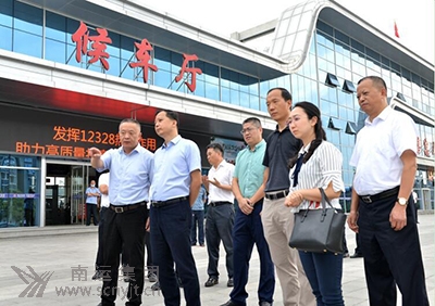 寧堅(jiān)(右一)一行在營(yíng)山汽車客運(yùn)站發(fā)車區(qū)調(diào)研