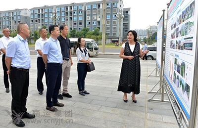 營(yíng)山縣副縣長(zhǎng)楊素梅(左一)在營(yíng)山汽車客運(yùn)站站前廣場(chǎng)的展板前,向?qū)巿?jiān)一行介紹營(yíng)山12328助力脫貧攻堅(jiān)工作開展情況。
