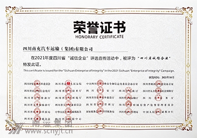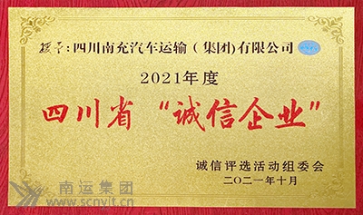 同創(chuàng)企業(yè)信用輝煌 共享南運(yùn)誠信榮光 南運(yùn)集團(tuán)再次榮獲四川省“誠信企業(yè)”榮譽(yù)稱號