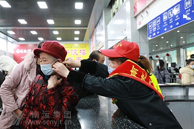 該車站持續(xù)優(yōu)化售票組織工作,積極拓展互聯(lián)網(wǎng)、小程序等售票渠道,以及手機(jī)支付等應(yīng)用范圍,充分發(fā)揮10臺(tái)自動(dòng)售(取)票機(jī)的作用,引導(dǎo)旅客使用智能自助購取車票,減少近距離接觸,切實(shí)便捷旅客購票乘車。同時(shí)開設(shè)“老弱病殘、孕、軍人購票優(yōu)先窗口”、“農(nóng)民工售票窗口”等3個(gè)人工售票窗口,延長(zhǎng)開窗時(shí)間,調(diào)整窗口功能,確保旅客到站購票不排長(zhǎng)隊(duì)。另還新增了1臺(tái)導(dǎo)購機(jī),旅客在上面可自主查詢發(fā)班信息。志愿者們分別引導(dǎo)旅客在自助購(。┢睓C(jī)上自行購(。┢,所有旅客自覺保持一米間距,一切井然有序。有位七十歲的大爺徑直走到自助購(。┢睓C(jī)上,在志愿者的引導(dǎo)下,一分鐘不到就買到車票,他十分高興地說:“現(xiàn)在買票不用排隊(duì)了,直接在機(jī)器上購取票,十分快速方便!” 外面寒風(fēng)冷冽,站內(nèi)暖意融融。頭戴小紅帽的“匡紅艷愛心班”站務(wù)人員在售票廳和候車廳不停地來回穿梭著,積極熱情地為旅客提供乘車咨詢、提拉行李、扶老攜幼、搬運(yùn)行李、購票取票、提供熱水等便民志愿服務(wù),將“情滿旅途”志愿服務(wù)融入旅客出行的每個(gè)細(xì)節(jié),切實(shí)保障每位旅客能舒心返崗,讓旅客們感受來自南運(yùn)人的溫暖。