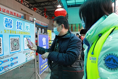 志愿者引導(dǎo)旅客掃四川天府健康通碼