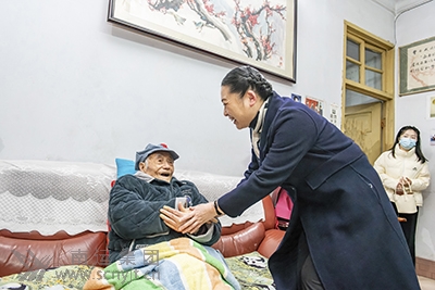 一進(jìn)曹老紅軍的家門(mén),劉曉梅便快步走到曹老身邊,笑容滿面地與曹老手拉著手促膝交談,噓寒問(wèn)暖,一起追憶往昔,重溫烽火歲月。詳細(xì)詢問(wèn)曹老在疫情放開(kāi)后的身體狀況,了解日常生活和家庭情況。曹老紅軍家人感動(dòng)地說(shuō):“感謝黨和政府對(duì)我們的關(guān)懷,感謝市交通運(yùn)輸局的關(guān)心,也感謝南運(yùn)集團(tuán)的照顧,我父親剛測(cè)了血壓和血氧都非常正常,胃口也很好!笨吹讲芾仙眢w依然硬朗,精神矍鑠,劉曉梅感到十分欣慰,向曹老送上了慰問(wèn)金,并致以崇高的敬意和新春的祝福,曹老高興得合不攏嘴。