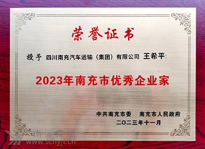 南運(yùn)集團(tuán)黨委書記、董事長、總經(jīng)理 王希平 榮獲“2023年南充市優(yōu)秀企業(yè)家”稱號