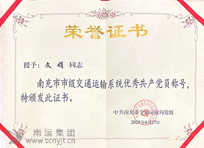 一、推薦為南充市交通運(yùn)輸局黨組表彰: