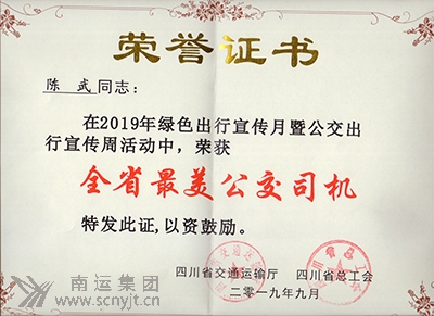 西充宏達(dá)公交公司陳武榮獲“全省最美公交司機(jī)”稱號(hào)